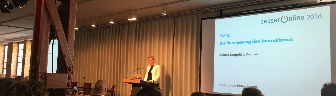 Das Internet hat den unabhängigen Journalismus ruiniert, den guten und wahren Journalismus kaputt gemacht, sagen die einen. Doch diese Annahme sei ein Mythos, sagte Juliane Leopold, Gründungsredakteurin der deutschen Version des Onlineportals buzzfeed, auf der DJV-Tagung „Besser Online“ (Foto) am 24.9.2016 in Berlin. Natürlich ist es wahr: Heute finden wir alle vermeintlich wichtigen Informationen auch bei Facebook, ob die neusten Schlagzeilen oder Veranstaltungstipps, Klatsch und Tratsch. Kein Wunder, dass der User im Durchschnitt etwa 50 Minuten am Tag in den Sozialen Netzwerken verbringt, doppelt so viel Zeit wie auf Nachrichtenportalen! Und dennoch räumt Juliane Leopold zur Eröffnung der Tagung gehörig mit dem Mythos der geraubten Unabhängigkeit von Journalisten auf.