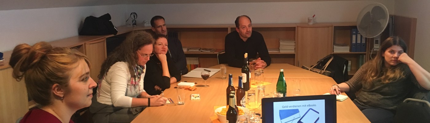 Die Diskussion im Anschluss war so angeregt und lebendig wie lange nicht beim Bloggerstammtisch. Zu den Anwesenden gehörten neben einer Musik– und einer Elternbloggerin auch Birgit von Livona, Nadine von Campusrauschen, eine Buchrezensentin, ein Marketingfachmann sowie der Dresdner E-Book-Autor Stefan Krell, der ebenfalls Erfahrungswerte mit in die Runde geben konnte. Er riet beispielsweise dazu, die Preise für E-Books nicht zu hoch anzusetzen, da dann deutlich mehr Bücher gekauft würden – und so der Umsatz steige.